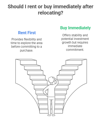 This is the biggest question most relocating buyers ask, and there’s no one-size-fits-all answer. But here’s what to consider: