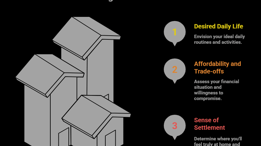 Look at commute times, school quality, safety stats, nearby amenities (parks, stores), and whether it fits your lifestyle.